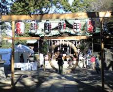 いつもと違って、鳥居には謹賀新年や神社の提灯が